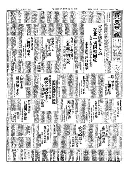 - 天津各國租界(천진각국조계)는勿論(물론) 在北一切國權回收(재배일절국권회수)