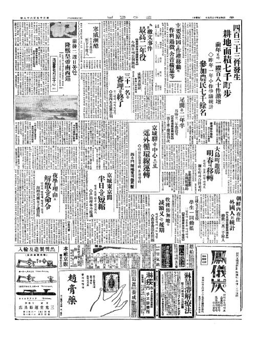 - 四百三十三件發生(사백삼십삼건발생) 耕地面積七千町步(경지면적칠천정보)