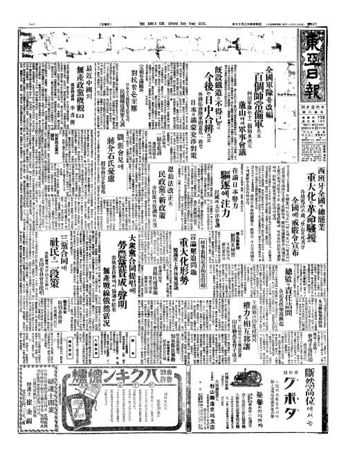 - 西班牙全國(서반아전국)에總罷業(총파업) 重大化(중대화)한革命騷擾(혁명소요)
