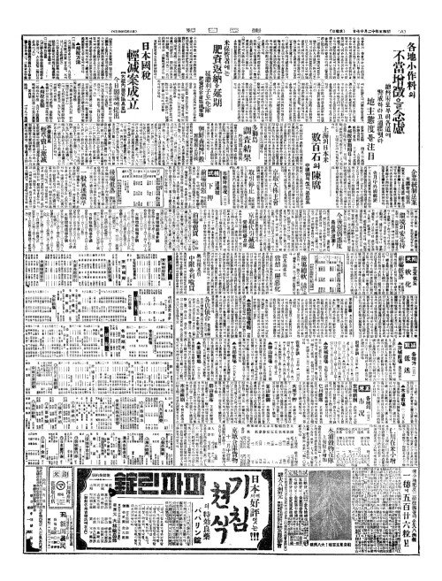- 日本國稅(일본국세) 輕减案成立(경감안성입)