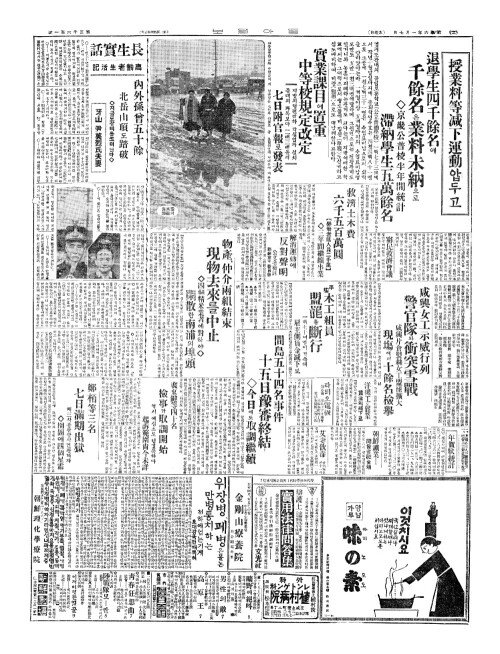 - 授業料等减下運動(수업요등감하운동)압두고 退學生四千餘名(퇴학생사천여명)에 千餘名(천여명)은業料未納(업요미납)으로