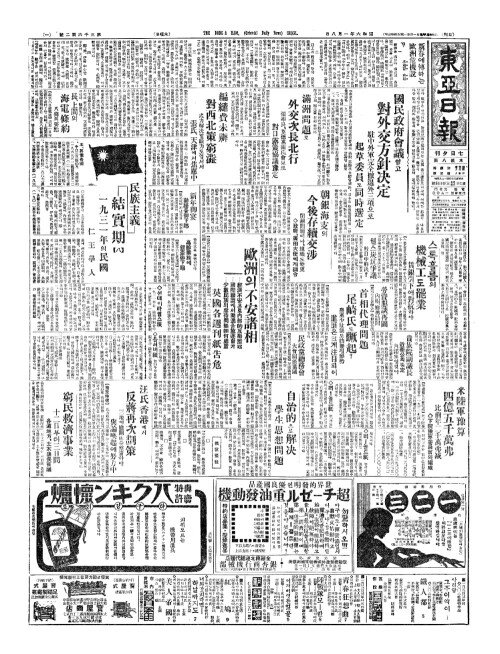 - 國民政府會議(국민정부회의)열고 對外交方針决定(대외교방침결정)
