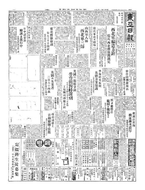 - 東北將領會議(동북장영회의) 奉天(봉천)서十日開催(십일개최)