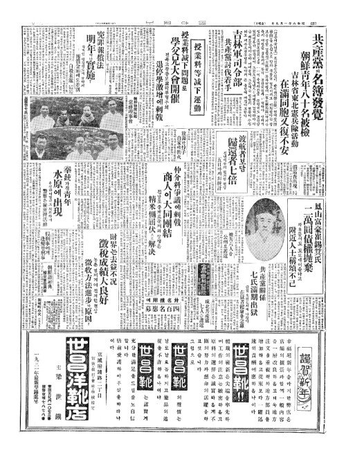 - 共產黨(공산당)의名簿發覺(명부발각) 朝鮮靑年八十名被檢(조선청년팔십명피검)