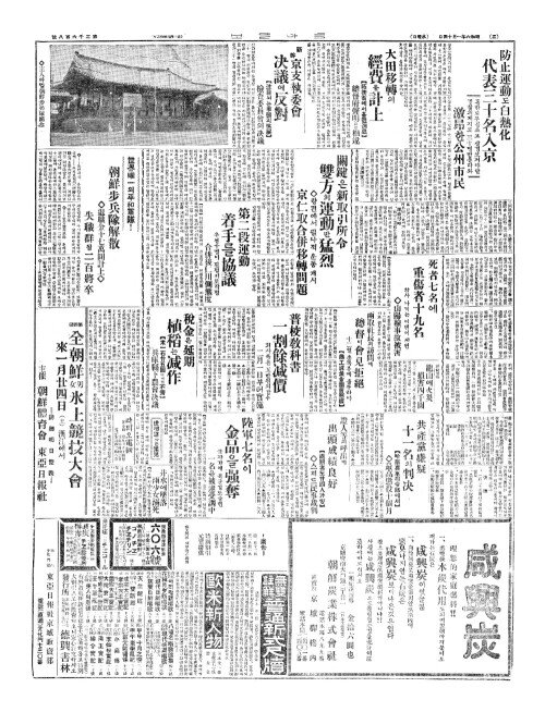 - 防止運動(방지운동)도白熱化(백열화) 代表三十名入京(대표삼십명입경)