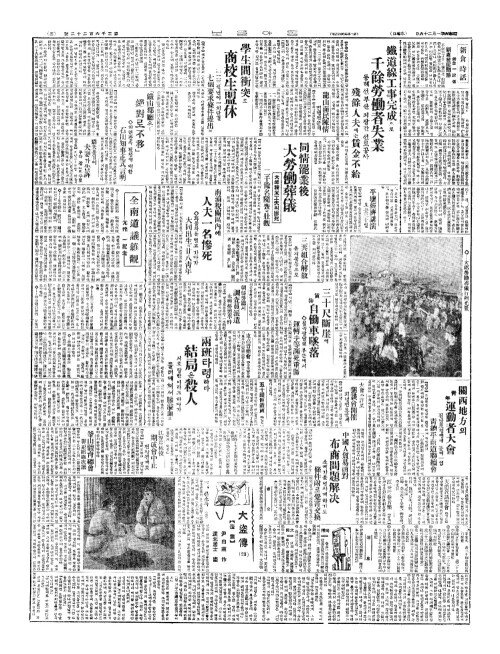 - 鐵道線工事完成(철도선공사완성)으로 千餘勞働者失業(천여노동자실업)