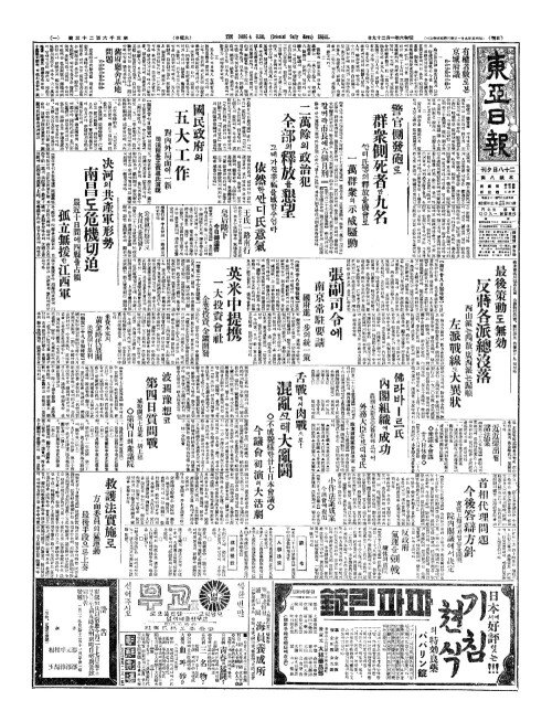 - 决河(결하)의共產軍形勢(공산군형세) 南昌(남창)도危機切迫(위기절박)