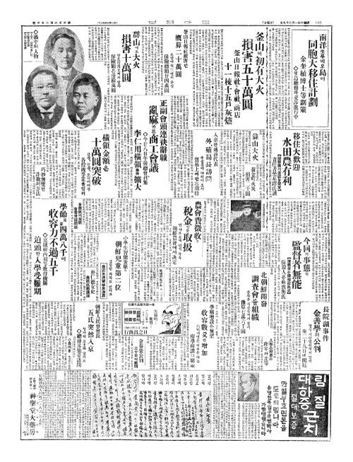 - 釜山(부산)에初有大火(초유대화) 損害五十萬圓(손해오십만원)