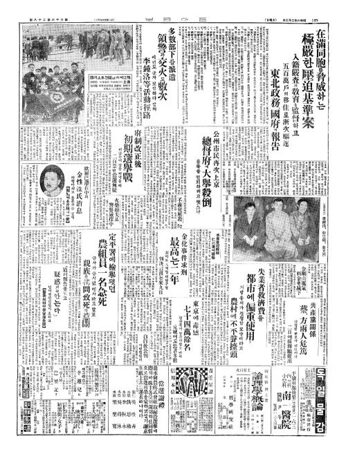 - 在滿同胞(재만동포)를脅威(협위)하는 極嚴(극엄)한壓迫基準案(압박기준안)