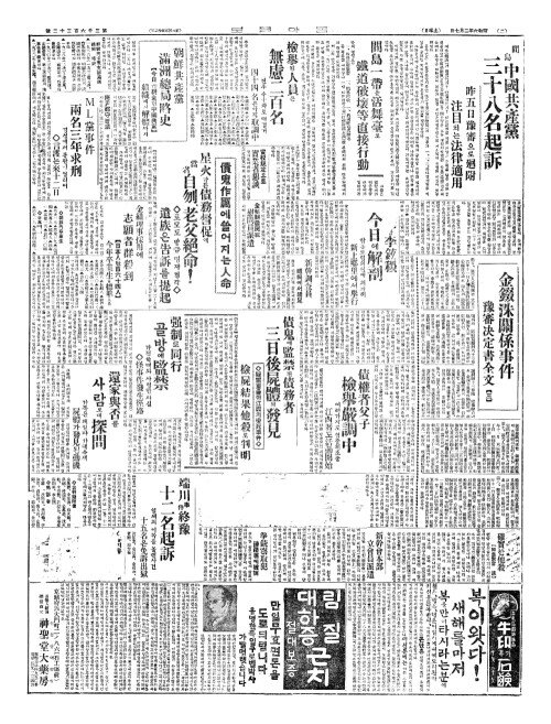 - 間島中國共產黨(간도중국공산당) 三十八名起訴(삼십팔명기소)