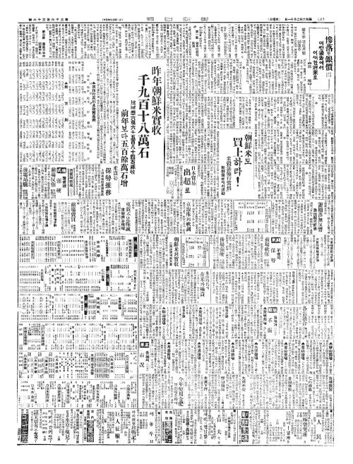 - 昨年朝鮮米實收(작년조선미실수) 千九百十八萬石(천구백십팔만석)