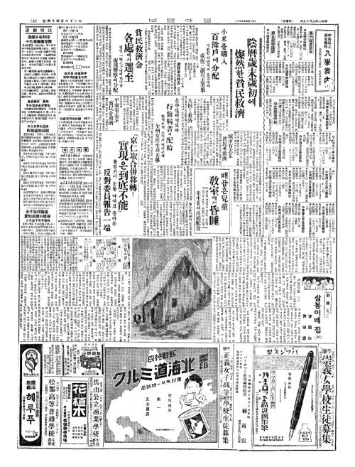 - 女學生(여학생)이떡모아 行旅病者(행여병자)에配給(배급)