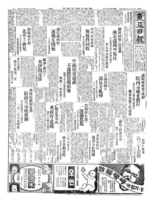 - 國權回收(국권회수)의猛運動(맹운동) 漸次滿洲(점차만주)에集注(집주)