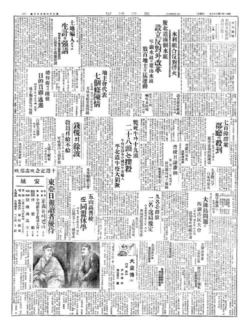 - 面書記三人(면서기삼인)이協力(협역) 父子(부자)를亂打重傷(난타중상)