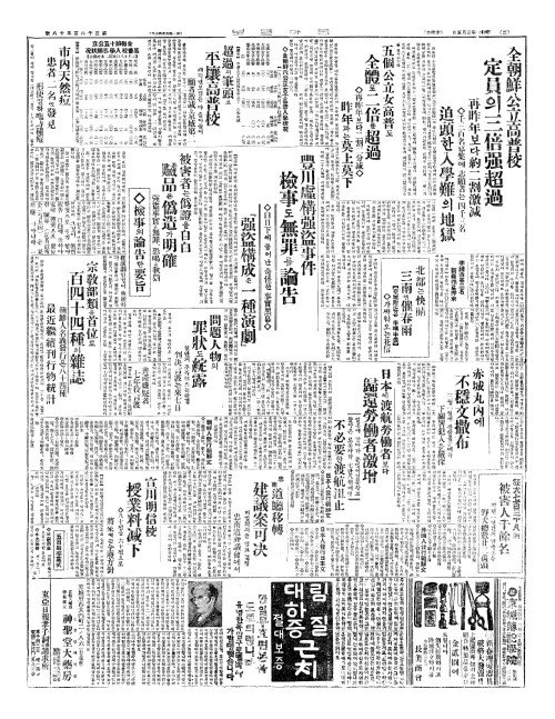 - 全朝鮮公立高普校(전조선공립고보교) 定員(정원)의三倍强超過(삼배강초과)
