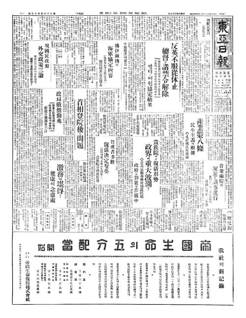 - 反英不服從休止(반영부복종휴지) 總督(총독)은 諸禁令解除(제금영해제)