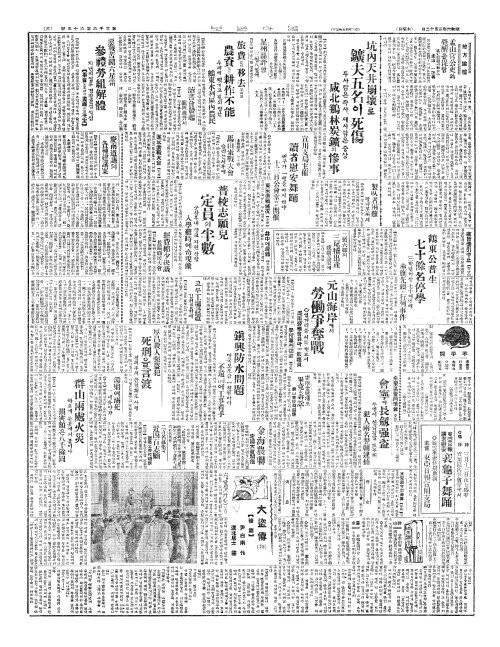 - 坑內天井崩壞(갱내천정붕괴)로 鑛夫五名(광부오명)이死傷(사상)