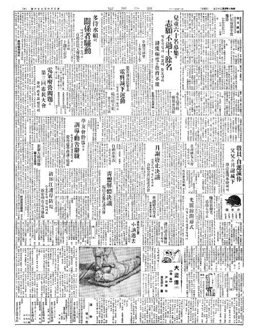 - 兒童六十名募集(아동륙십명모집)에 志願不過十餘名(지원부과십여명)