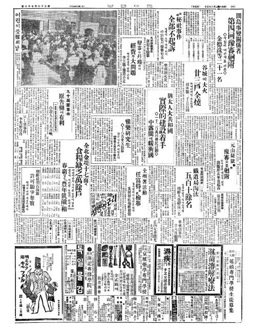 - 全北金堤十七面(전북김제십칠면)에 食糧缺乏萬餘戶(식량결핍만여호)