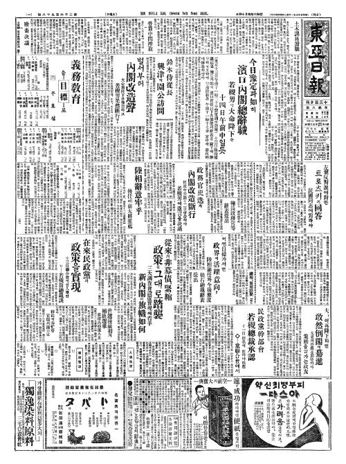 - 今日豫定(금일예정)과如(여)히 濱口內閣總辭職(빈구내각총사직)