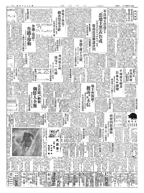 - 新聞聯合社(신문련합사)의 通信(통신)을不揭(부게) 國府(국부)의壓迫益甚(압박익심)