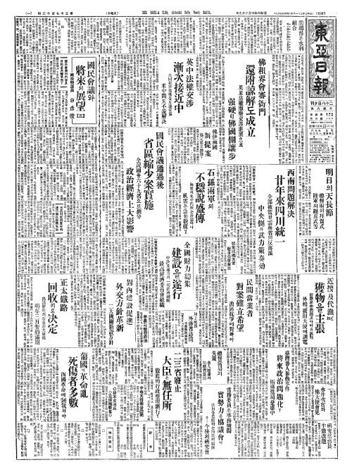 - 西南問題解决(서남문제해결) 廿年來四川統一(입년내사천통일)