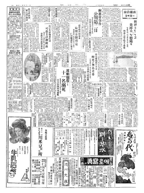 - 渡船顚覆(도선전복)으로 十一名溺死(십일명닉사)