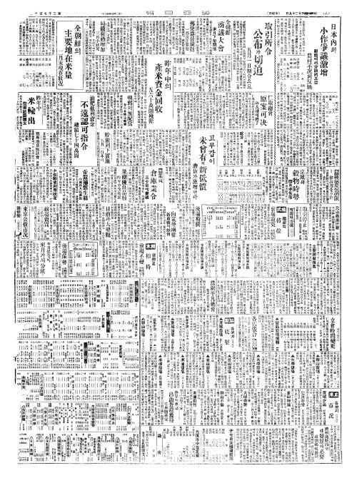 - 日本內(일본내)의 小作爭議激增(소작쟁의격증)