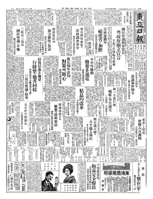 - 胡漢民氏(호한민씨)에 南方鎭撫(남방진무)를懇請(간청)