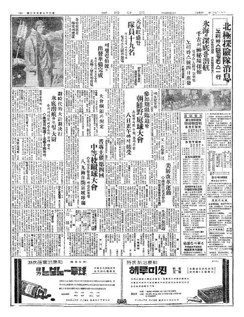 - 北極探險隊消息(북극탐험대소식) 노티라스號(호)윌킨스一行(일행)