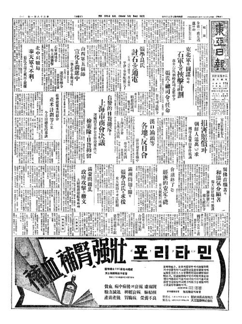 - 滿洲問題(만주문제)에關(관)한 張學良氏(장학량씨)의求援(구원)