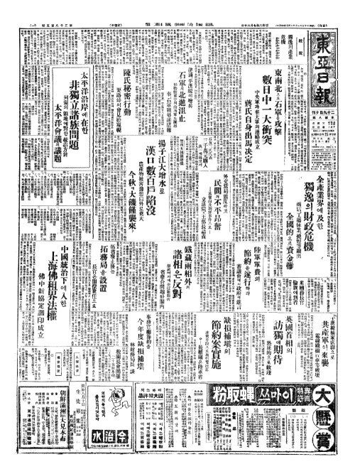 - 揚子江大增水(양자강대증수)로 漢口數百戶陷沒(한구수백호함몰)