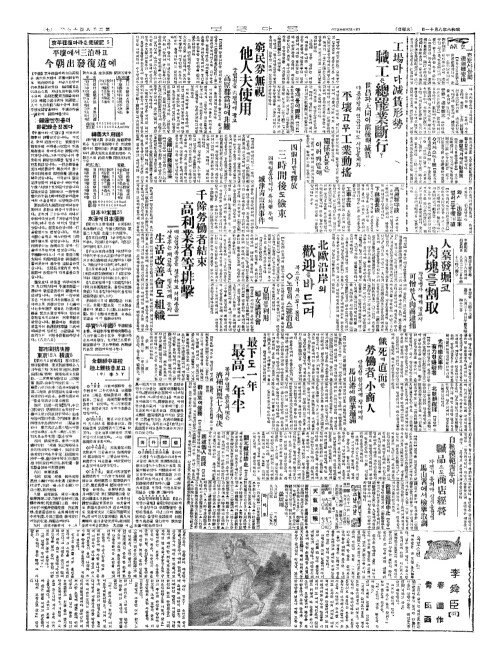 - 千餘勞働者結束(천여노동자결속) 高利業者等排擊(고리업자등배격)
