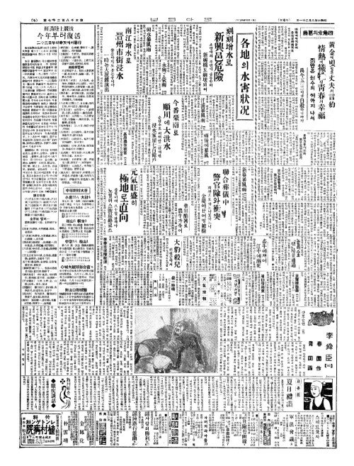 - 罹災區域十六省(이재구역십륙성) 災民總數五千萬(재민총삭오천만)