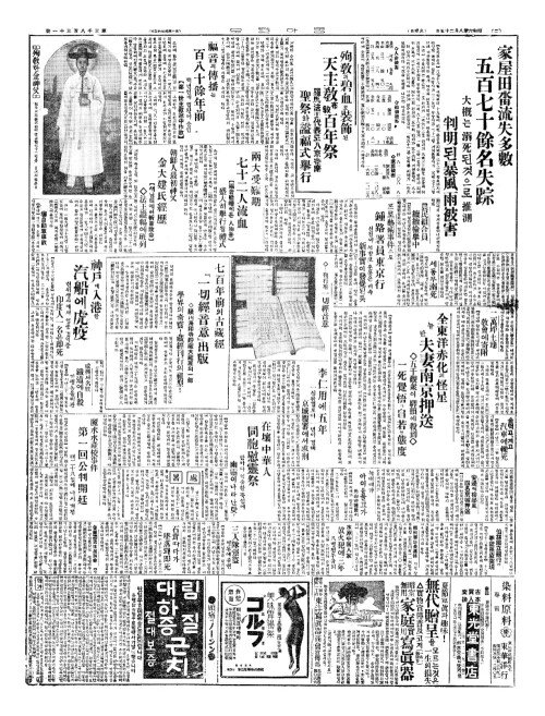 - 家屋田畓流失多數(가옥전답류실다수) 五百七十餘名失踪(오백칠십여명실종)