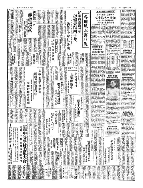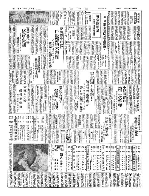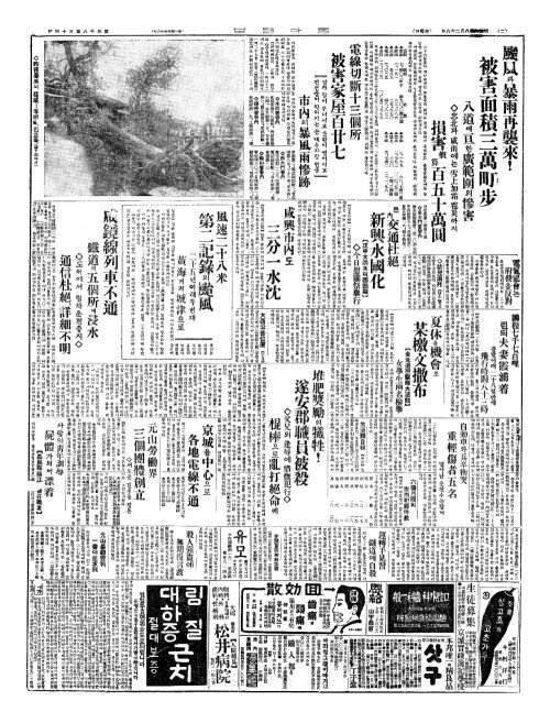 - 颱風(태풍)과暴雨再襲來(폭우재습내)! 被害面積三萬町步(피해면적삼만정보)