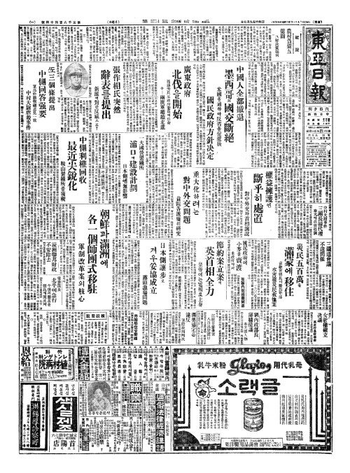 - 張作相氏突然(장작상씨돌연) 辭表(사표)를提出(제출)