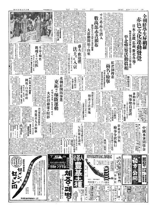 - 全朝鮮學生層網羅(전조선학생층망라) 赤色文化運動發覺(적색문화운동발각)