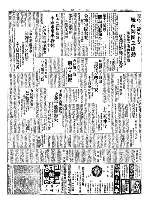 - 間島一帶(간도일대)도不安(부안) 羅南師團(라남사단)도出動(출동)
