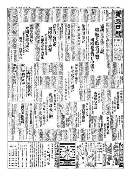 - 滿洲事件益重大視(만주사건익중대시) 强硬(강경)한勸吿更發(권고경발)?
