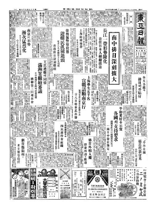 - 上海學生五千名(상해학생오천명) 宣戰請願南京行(선전청원남경행)