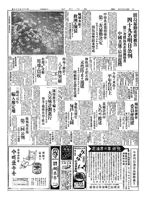 - 間島暴動重要被吿(간도폭동중요피고) 四十九名明日公判(사십구명명일공판)