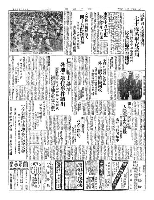 - 咸北(함북)의大檢擧事件(대검거사건) 七十餘名畢竟送局(칠십여명필경송국)