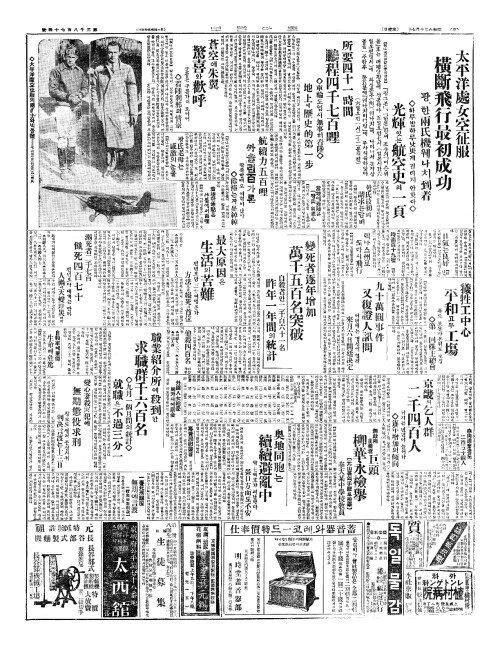 - 太平洋處女空征服(태평양처여공정복) 橫斷飛行最初成功(횡단비행최초성공)