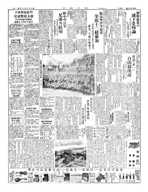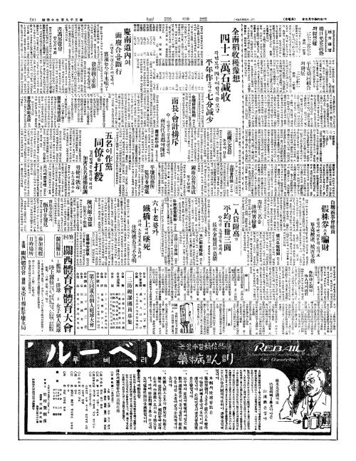 - 全南稻收穫豫想(전남도수확예상) 四十二萬石减收(사십이만석감수)