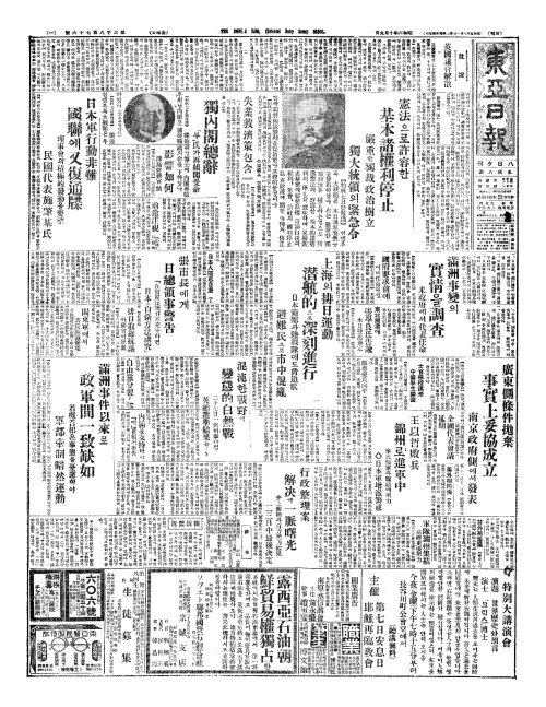- 東北民衆(동배민중)에 張學良氏吿諭(장학량씨고유) 本日發出豫定(본일발출예정)