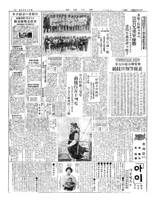 - 中央基督敎靑年會主催(중앙기독교청년회주최)、本社後援(본사후원) 第五回籠球聯盟戰(제오회농구련맹전) 競技日割等發表(경기일할등발표)