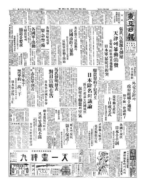 - 張氏(장씨)、反張派大彈壓(반장파대탄압) 天津(천진)에暴動勃發(폭동발발)