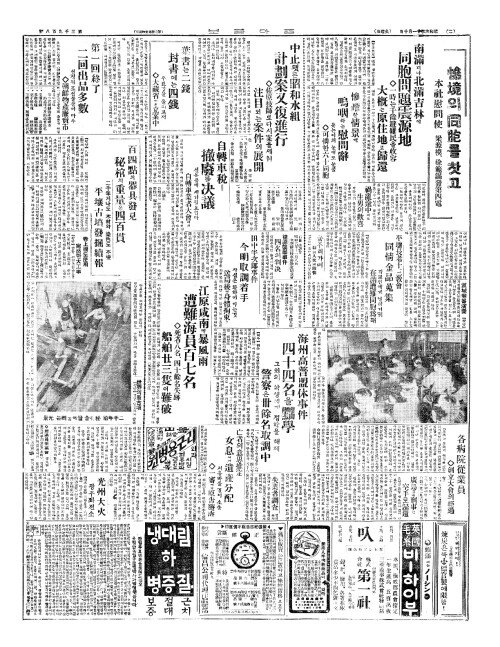 - ?境(경)의同胞(동포)를찻고 本社慰問使(본사위문사) 梁源模(량원모)、徐範錫發第四電(서범석발제사전)