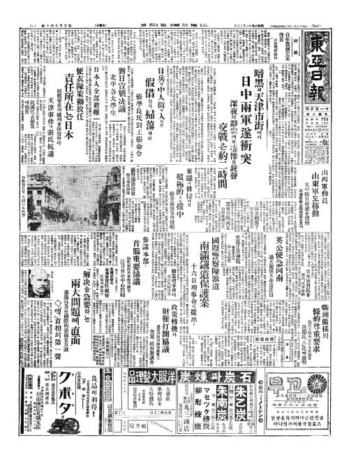 - 暗黑(암흑)의天津市街(천진시가)에서 日中兩軍遂衝突(일중양군수충돌)